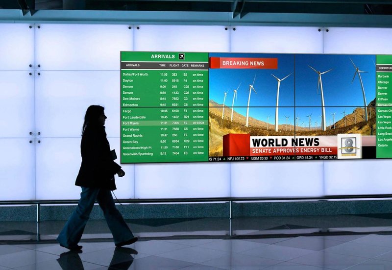 LED Digital Signage technology is becoming increasingly popular due to its ability to deliver seamless images, scalability to any size or shape, and excellent optimal characteristics that make video wall content look great from any angle. Our Indoor and outdoor display products, video walls, LED, and LCD displays, offer high resolution, high brightness, and power saving features. These products are able to satisfy large-scale video wall requirements for information centers in corporate lobbies, transit control centers, convention halls, and outdoor billboards.